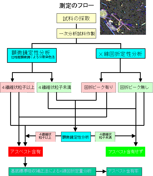 2.3本の標本試料スライドの合計3000粒子中に4繊維以上あれば有、未満は無。 |