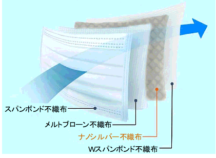 高品質ナノシルバー不織布は、抗菌性の高い銀イオンを大量に発生させ、菌の繁殖を抑え、菌を死滅させる働きがあります。